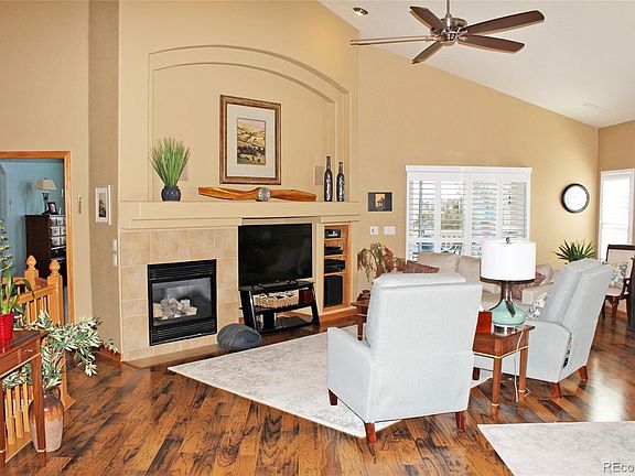 You will love this stunning home with a rare floor plan and golf course views! Step through the front door onto the engineered 4' plank hardwood floors and relax in the spacious living room with vaulted ceilings, ceiling fan, plantation shutters, surround sound and a gas fireplace with a blower. Enjoy cooking in the gorgeous eat-in kitchen with Quartz counters, 42' cabinets, stainless steel appliances, double ovens, a pantry and a breakfast bar. Work from home in the comfortable office with French doors or escape to the large master bedroom that opens to the deck and includes vaulted ceilings, ceiling fan, a walk-in closet with organizers and a 5-piece master bath. Drink your morning coffee on the covered Trex deck as you watch the sun rise over the golf course. Have a game night in the family room of the finished walkout basement with a fireplace, surround sound, built-in shelves and a wet bar. Also enjoy the exercise room, guest bedroom, two baths and unfinished workshop in the basement. This gorgeous home will not last long, so make it yours today!