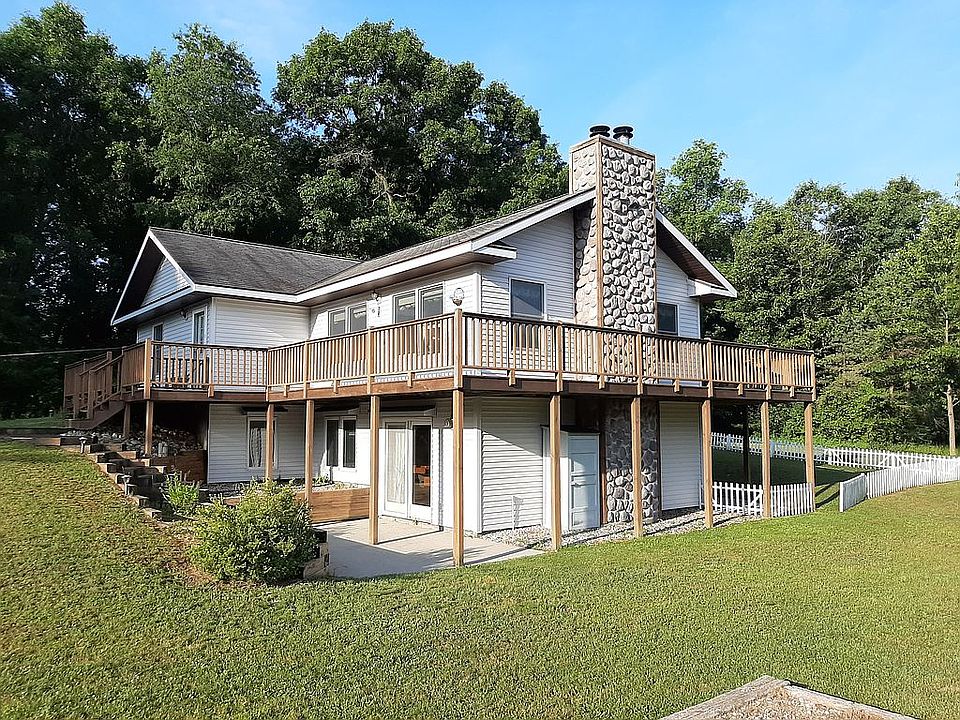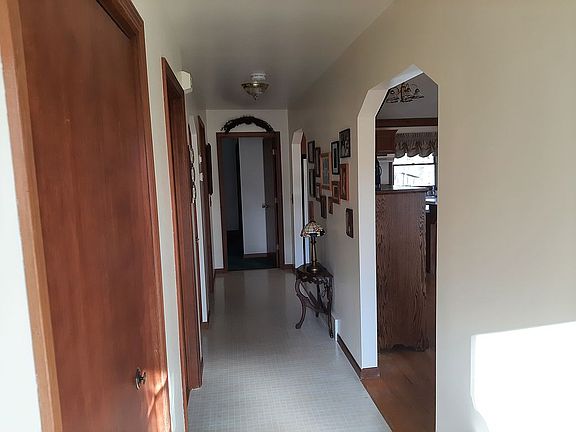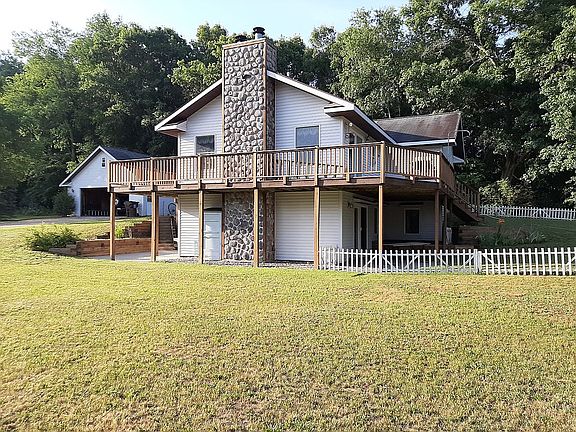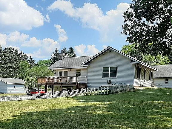 The house is a 1156 square ft ranch with a fully finished basement with its own full kitchen. Both the upstairs and basement apartment have gas fireplaces. The basement can be rented as a separate unit or bed and breakfast, which I have been doing for over a year now. You could pay the mortgage just by renting the basement. There is 4.7 acres behind the house with over a hundred blueberry bushes in the sw corner with rest partially wooded. Deer and turkeys visiting and passing through all the time. There are two out buildings one is the main garage 24' x 24' with an attic for storage and the other is 32' x 38' which is used as a woodshop and additional storage. The 4.7 acre property has future possibility to split for one additional lot. There is a 66 ft. wide deeded easement for access from the road.