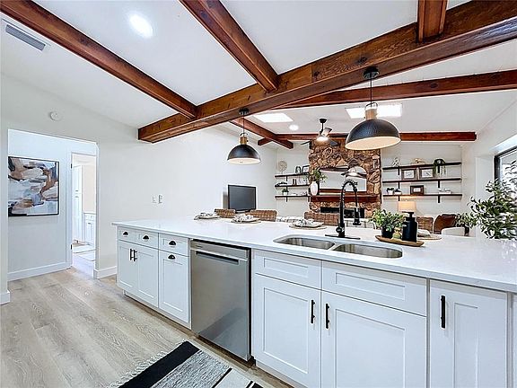 Private poolCozy functioning fireplaceCompletely remodeled pool homeNew quartz countertopsSunny florida roomSpacious corner-acre lotSplit-bedroom floor plan