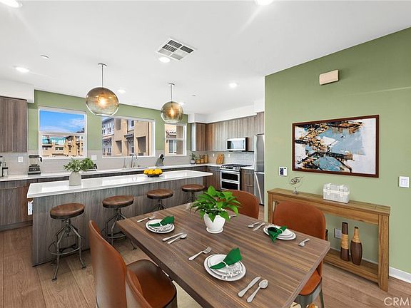 Welcome to the best in Buena Park living at Indigo Walk! Step into the newly built three bedroom and three bathroom townhome with an open floor plan and no one above or below. The kitchen delights with an oversized quartz island, subway tile backsplash, sleek faux wood cabinets, custom fixtures, automatic blinds, and stainless steel appliances. The home is filled with warm ambient light all year round. The spacious primary suite includes a walk-in closet with custom closet organizers and the bath includes dual sinks and frameless glass shower. The home is finished with a three-car garage, inside laundry, balcony, and whole house HEPA filter. Low HOA fees and no Mello Roos. Located close to The Source, Buena Park Downtown & mall, Disneyland, and Knott's Berry Farm with local access to the 5 and 91 freeways.