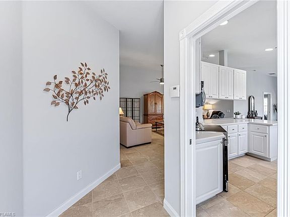 Located in the gated community of Verona Walk, this Capri model villa is ready for it’s new owners and priced for quick sale! The attached villa is located on the preserve side of the community with a park like setting in front and private landscaped area in back. It lives like a single family with 2 bedrooms, 2 baths, high ceilings, walk in custom closets, large living and dining areas, 2 car garage and screened lanai. This well maintained property is in move in condition with tile and wood floors throughout, new SS appliances & disposal in the kitchen, new fans in the main living area, new front door 2023, washing machine 2021, exterior and interior painted 2021, AC replaced and vents cleaned 2019. Feel secure for any storm with poured concrete construction, hurricane shutters and X flood zone designation. Cable, internet and ADT security included in HOA fees. Verona Walk is a Blue Zone community that encourages a healthy and social lifestyle with miles of walking and biking paths that meander through beautifully landscaped grounds and over waterways all leading to the town center. There you will find residents enjoying the many events and amenities including a resort style pool, separate lap pool, restaurant, ice cream shop, playground, basketball, bocce, tennis, pickle ball and fitness center. For your convenience the town center also has a post office, gas pumps, travel agency, beauty salon and a weekly farmers market. You might never need to leave the community… But if you do venture out you will find that Naples and Marco Island beaches, golf courses, restaurants and shopping are just minutes away!! More photos coming soon...