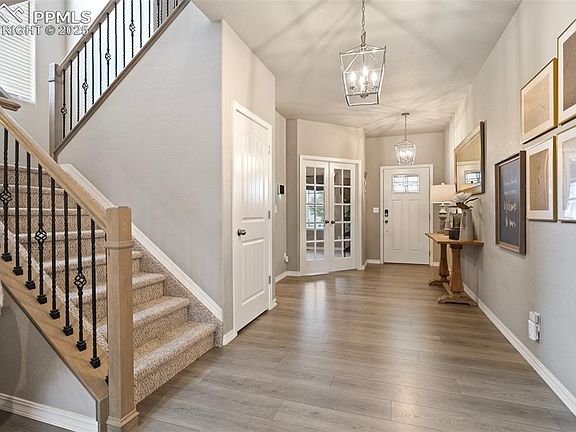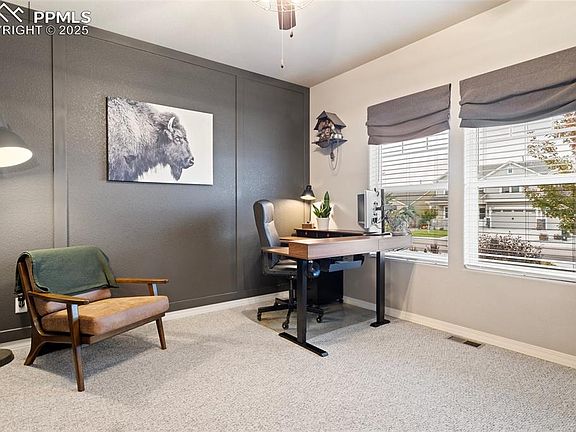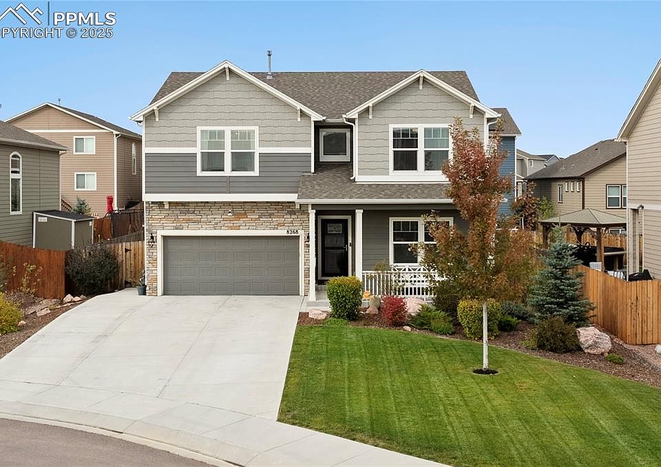 If you’ve been looking for that perfect 6 bedroom, 3.5 bathroom designer's dream home with a main-level office, upstairs loft, finished basement, beautiful outdoor living space, and nestled in a quiet cul-de-sac in award-winning Academy School District 20, your search may be over. Check out this immaculate, better than new, 2-story home in Sterling Ranch with upgraded features throughout! The main level has a bright living room boasting an impressive floor to ceiling stone-surround gas fireplace; open-concept kitchen with quartz countertops, upgraded cabinets with soft-close features and dovetail drawers, single bowl sink with touch faucet, expanded island, and stainless steel appliances including gas top range/oven. An office with glass window French doors and updated powder bath complete the main level. Upstairs you’ll walk into an open loft before entering the HUGE primary bedroom with a re-modeled private 5-piece bath en-suite and walk-in closet. 3 bedrooms, an updated bathroom with beautiful shower, and laundry room with storage cabinets wrap-up the upstairs space. In the tall, 9’ finished basement is a rec room, 2 additional bedrooms, and a full bathroom. Outside you’ll want to show off the immaculate landscaping: Turf out front for beauty and artificial grass in back for convenience, all cared for by automated sprinkler and drip systems. The fenced in backyard is an outdoor living dream with an extended patio and a stunning hard-top gazebo covering an immaculate hot tub. Additional home features include smart home systems, AC, ceiling fans, whole-house fan, upgraded interior lighting, Trimlight LED exterior accent lighting system, expanded driveway, active radon system, sump pit, and the list goes on. Located close to schools and parks and just minutes to the Powers Corridor where you’ll find shopping, entertainment, and dining. Contact your real estate agent for more information and to schedule a private showing of this beautiful Colorado Springs home!