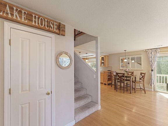 So many great things to enjoy at this Oak Shores lake house. Two outdoor areas to enjoy the sun. Two living room areas, one up one down. Two boats can fit in the oversized garage. Three bedrooms that are large enough for multiple beds. The primary bedroom is split in two currently but could be converted back easily. The kitchen is wide and open with two sinks. The perfect kitchen for big meals with lake guests. Unique flat cul de sac with front facing fire pit patio for a perfect place to hang with the whole family. The seller mentioned many marshmallows were roasted here. Two minutes to the boat ramp and community pool. The boat garage is 33ft long.