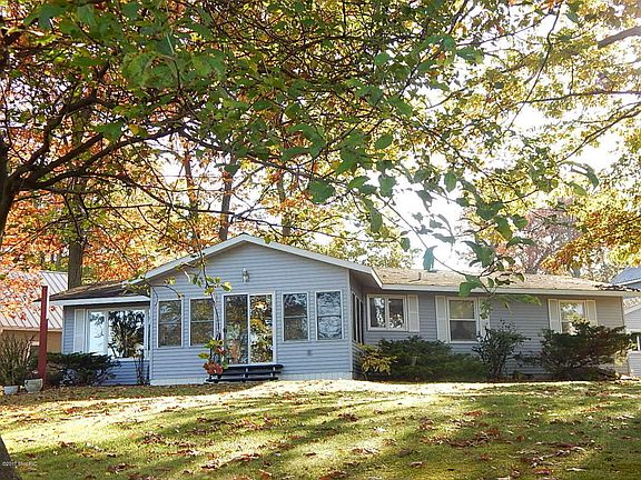 Welcome to this unique angle-designed Ranch that was constructed to capture the best hilltop views of Long Lake from nearly every window of your Home. Featuring 525ft of private, sandy frontage and a large yard with multiple fruit trees, this property hosts the perfect ''getaway'' right in your back yard! After entering the Home, you are greeted with a toasty wood burning insert in the spacious living room. The Kitchen has a convenient snack bar with a gorgeous view of the Lake. The large diningarea leads you out to the bright three-seasons room through its convenient slider door. There is endless room for family and entertainment! The Main level hosts 3 Bedrooms and 2 1/2 bathrooms. The lower level features a BONUS 588 sq ft HUGE family room, another bedroom (without egress) and