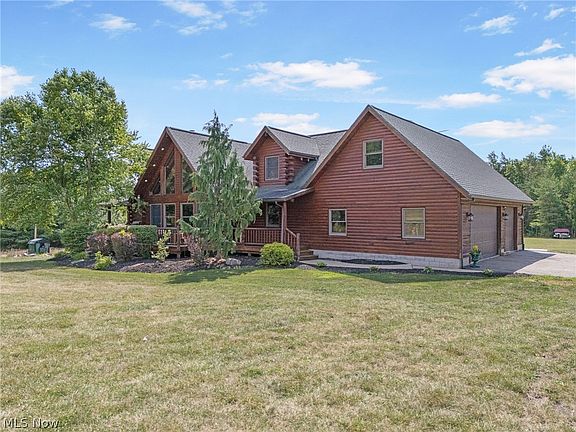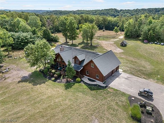 Welcome to 8269 Everhart Rd. NE, Dover. This beautiful log home built in 2009, is nestled on 12 picturesque acres in the Tusky Valley school district. This dream home features 4 bedrooms, with the master suite conveniently located on the first floor complete with a full bath and a walk-in closet. As you enter this home on the main floor you will find a half bath and a laundry room, leading to an open-concept living space. Featuring a kitchen with appliances, living room with a stunning stone fireplace , a dining room with cathedral ceilings, office space and a captivating half-log staircase. The second floor offers 3 additional bedrooms, a cozy loft, and a game room that is perfect for family fun.