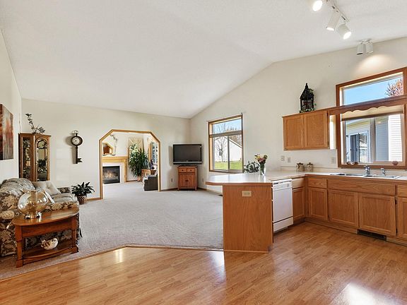 Beautiful End Unit, Single Level Living Townhome with Lots of natural light! Your new home features vaulted ceilings, a sunroom, a fireplace, a private master ensuite, privacy blinds, lots of kitchen storage and an open floor plan! Your sunroom walks out to your own private patio and an unbelievable amount of green space that you don't have to worry about maintaining! The laundry room and garage are large and have plenty of storage! New washing machine and roof recently.