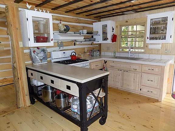 Beautifully updated log home in the country on 1.81 acres. This home was completely remodeled, a second floor was added and the remodeling was completed in 2015. This charming house has knotty pine throughout. The first floor features a kitchen open to the dining room with patio doors and a gas fireplace, a full bath and living room with fireplace and built in desk. The unique stairway with wagon wheels leads upstairs where you will find french doors leading into the master bedroom, a fireplace, full bathroom with clawfoot tub and two additional bedrooms with patio doors leading to a balcony with a stairway. Industrial Westinghouse electric furnace (can be converted to propane) with central air as well as 3 fireplaces hooked up to propane for a second source of heat. New Pella windows were added between 2008 and 2011, there is a full house water filtration system and a Michigan basement. This home comes furnished and is move in ready for you to enjoy. Nicely landscaped yard, hook up for a camper, patio area and lovely flower garden as well as a nice deep yard and orchard with apple trees, a apricot tree and a pear tree. Large 30' x 40' block workshop with two 10' doors and a rubber roof. Also included is an antique Kalamazoo Crown Pot Belly woodstove. Enjoy this beautiful country home located just minutes from the lake.