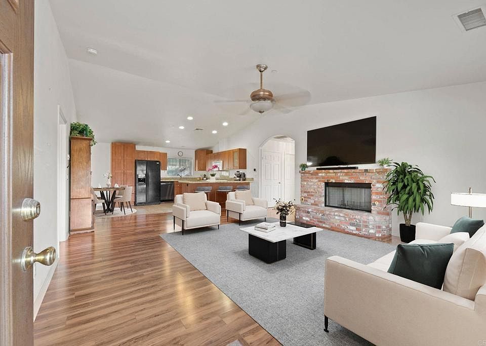 Welcome Home! This charming 3-bedroom, 2-bath residence features high ceilings and a bright, open floor plan. The spacious kitchen offers ample storage, making it perfect for cooking and entertaining. Paid solar and an oversized 2-car garage. The electric entry gate leads to a long, paved driveway, adding both convenience and security. With plenty of space for chickens, goats, horses, or even the garden of your dreams, this property is full of possibilities! Enjoy quick access to the 15 freeway, making for an easy commute to San Diego or the Inland Empire. Don't miss this opportunity.