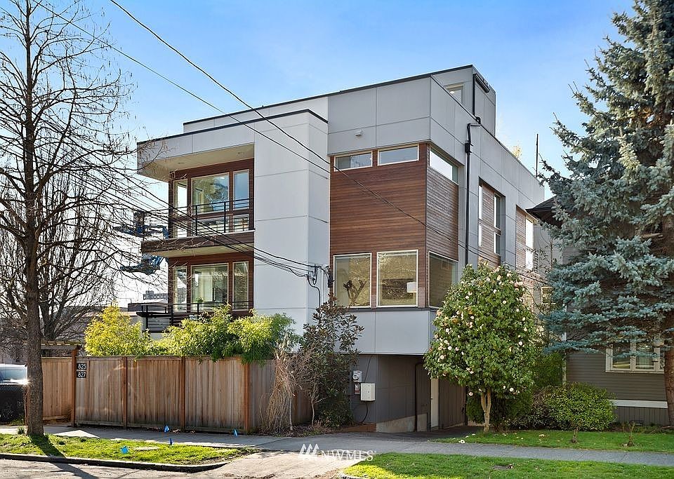 Your urban oasis awaits! View the Seattle skyline w/peekaboo views of Mt. Rainier & the Sound from your private rooftop deck. Bask in the light-filled, open floor plan w/high ceilings, radiant floors on lower level & heat pump w/AC on main & upper levels. Spacious kitchen w/stainless appliances, includes gas range. Large deck off main level allows for easy access to BBQ. Master suite on upper level w/private balcony, large walk-in closet & huge 3/4 bath. Guest suite w/attached full bath on lower level, includes its own fully fenced yard. Custom upgrades include: California Closets in both bedrooms & lower bath; gleaming Acacia walnut hardwood floors & Norman top-down/bottom-up blinds. Attached carport w/storage, plus spacious storage room.