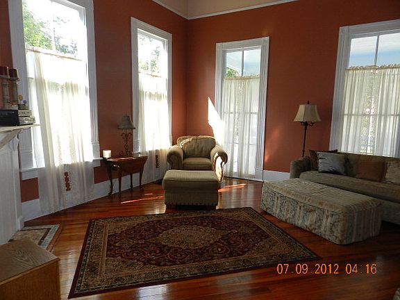 Wonderful Victorian style home situated on a corner lot, going street to street, 1.01 acres. Restored spacious home with hardwoods & ceramic tile. Ceiling to floor windows. LR, hall & downstairs br's have 14 ceilings. DR is 12 & upstairs is 10. Back yard is fenced with 2 1/2 car garage, 20 x 30 building, extra large parking pad. Front porch is 41 x 8 1/2, back screened porch 9 x 10. Home has a cellar, tankless gas water heater.