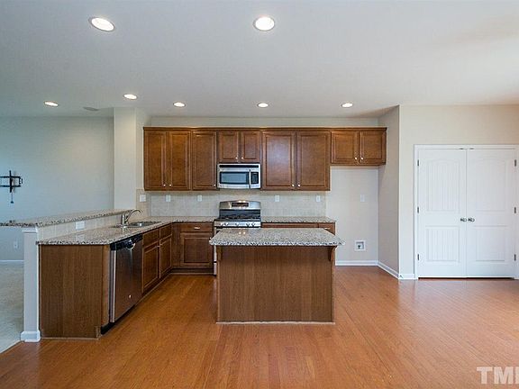 This Durham home offers granite kitchen countertops, hardwood flooring, an office, and a two-car garage.