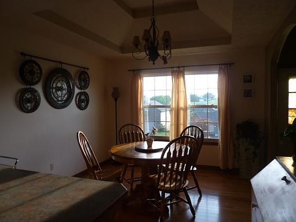 Spacious and beautiful open floor plan, with just the right splash of colors add warmth to this French Traditional family home in Cobble Creek. 5 bedroom, 3 full bath, walk-out basement with a wonderful backyard view of the neighborhood pool and play area. Lots of natural light, bay windows, high ceilings, can lights, and a gas log fireplace. Rich and beautiful hardwood floors in kitchen and custom built cabinets, tile floors, upgraded carpet, awesome master suite with his and hers sinks & closets, tile shower and jetted tub. Oversized family room in basement, plus a fun party area for everyone. There is plenty of storage. Lower level doubles as storm shelter. John Deere room/workshop for Dad. Large deck, patio and a beautifully landscaped yard. Super neighborhood with pool and children's play area.