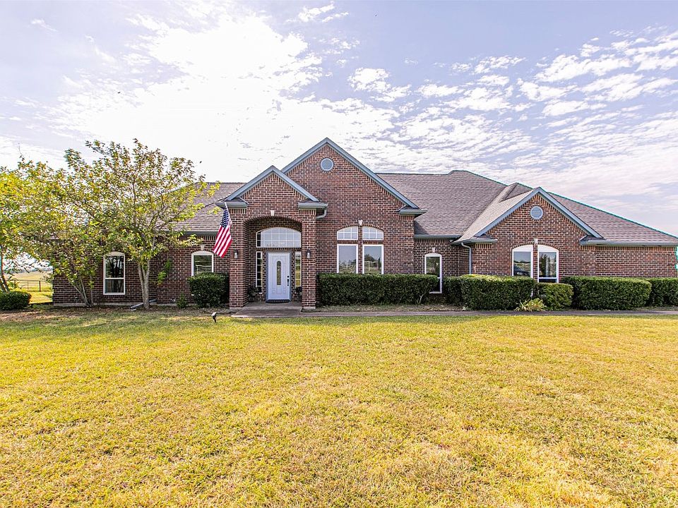 Meticulously maintained 3-2.5-3 home on 11 acs. This lovely home features an open family room with a WBFP and breakfast room overlooking the pool and acreage, an island kitchen with Corian countertops and a walk-in pantry. Other features, a formal dining with hardwood flooring, a private office to work from home and split bedrooms with a shared bath. The master suite has a huge bathroom, with separate vanities and ample closet space. The oversized 3 car garage has access to the backyard, a sink and plenty of room for parking and storage. Recently updated windows and doors make this home more energy efficient. The fenced backyard features a sparkling pool spa and 2 pergolas. There's an electric entry gate and pipe fencing on the front and wire fencing on the pasture, a 1 ac. stock pond, a nice 30x30’ shop with a 24x30’ overhang, an attached 2 stall barn with a tack room and a separate 10x14’ storage building. Conveniently located 4.5mi. off I-45, at the Buc-ee’s exit.