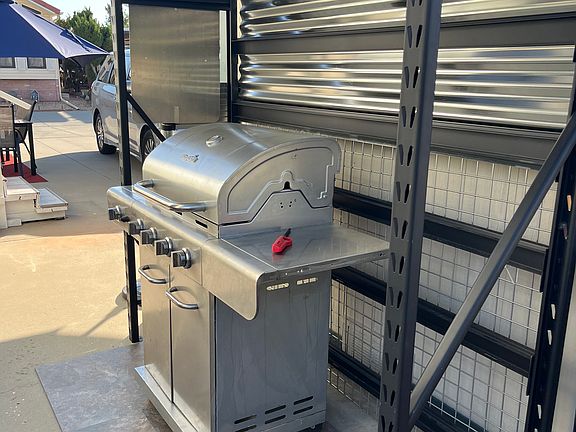 - Exterior features: Barbecue, Private parking along the RV trailer., shed storage