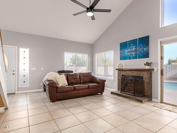 This wonderful 3 bed, 2.5 bath two-story home in Stonegate Crossing is the one! Nestled on a cornet lot 2-car garage, a low-care front yard w/mature tree, gated paver front patio. Open Light and Bright kitchen and family room with a wood-burning fireplace, vaulted ceilings, designer paint, tile floors in common areas, and tons of natural light. The kitchen boasts solid-surface counters, a pantry, tile backsplash, ample wood cabinetry, peninsula w/breakfast bar & Large Dining area. Main bedroom is downstairs for extra privacy! It has an ensuite with a separate tub/shower & a walk-in closet. Upstairs has 2 bedrooms & a full bathroom. You'll love the fantastic backyard with a patio, built-in bar & BBQ, & Diving pool for year-round enjoyment! Must see!