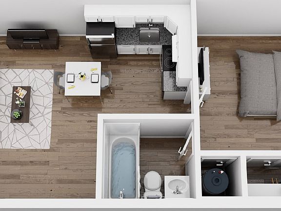 Modern unitStylish finishesGranite countertopsBrand-new flooringUpdated lightingFresh paintNew cabinets