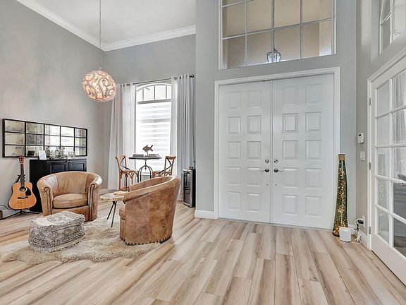 Stunning, updated 2 story 4 Bedroom, 4.5 bath located in popular Binks Estates. Located on tree lined street in beautiful community that is walking distance to all 3 A rated Wellington schools. Master Bedroom with 2 Walk in California Closets, and lovely master bath with shower and soaking tub. Hardwood tile throughout downstairs and floor to ceiling windows for natural light.. Custom blinds and Window treatments. Updated kitchen is a chef's delight with marble counters, breakfast nook, as well as Counter seating. Smart home wired with security and Moen automated water shut off.The backyard is a true oasis. Salt water pool and spa redone in 2023. High Calusia hedges surround the fully fenced backyard on all sides making it extremely private. Leathered marble tile surrounds pool and spa.. added bonus of cabana bath. No expense has been spared on landscaping, with full front and rear automated landscape lighting. Partial impact glass and storm shutters. 3 car garage with 2 electric vehicle chargers. The upstairs has hardwood floors throughout, 3 bedrooms, 1 full bath, and 1 Jack and Jill. Ample closet space in all bedrooms.This one won't last!