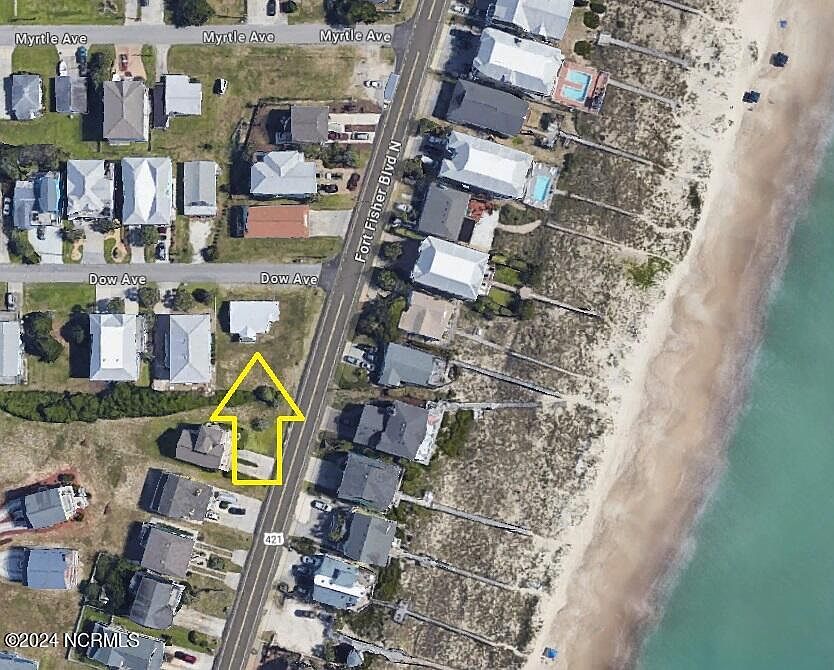 Formerly known as 'The Paw Paw Patch,' this classic 3 bedroom, 2 bath beach house can be all yours.  Large lot measuring approx 93 feet across the front and 90 feet deep along Dow rd. If you choose, plenty of room to build new construction allowing for setbacks. Lot sits on corner, allowing access from Ft Fisher Blvd and also Dow rd. Public beach access just a few steps North of where the lot sits. No HOA and in close proximity to Kure Beach pier, public parks, restauarants etc. Lot has water and sewer. House on lot was flooded in September 2024.. flood waters came approximately 14 inches above the floor. The water has all drained away and the home is drying out. Sellers do not intend to restore/ repair the house.