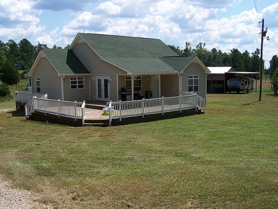 1407 sq feet ranch style home sitting on crawl space with 3 bedroom/2 baths on quiet 7 acres. Real, hand scraped hardwood floors through living area and bedrooms. Travertine (natural stone) tile in kitchen, pantry, laundry room, and bathrooms. Master bedroom with custom built-in desk. Ceiling fans in all bedrooms. Vaulted ceilings in the living room. French doors in living room and master bedroom. Kitchen includes all new, stainless steel appliances. A/C unit replaced in 2015. Large attic with plenty of storage. Includes custom pole-barn with walk-in cooler and RV bay. Fenced in pasture at barn perfect for farm animals. Also, 1 acre fenced with electric fence. Fire pit and large decks for entertaining. Contact: John Norman 404-379-1293