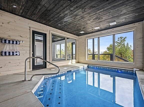 Are you looking for a brand new, low maintenance, income producing property in an unbeatable location? If so, look no further! With Gross Rental Income projections of $150k+, this 2022 built, 3 BR, 3.5 BA, indoor pool cabin in the Ski Mountain area of Gatlinburg offers gorgeous views of Mt. LeConte and is conveniently located to Downtown Gatlinburg and the National Park, The interior features T-N-G throughout, LVP flooring, solid wood cabinetry in kitchen and all baths including granite countertops, stainless appliances, 2 electric fireplaces, 2 walk-in, fully-tiled showers, 1 steel bathtub-tile shower combo, bunk room, game room, hot tub and fully furnished. Home also offers 3- covered porches, all with impeccable views. Cabin will sleep 12+ with 6 king beds and 1- queen sleeper sofa. The builder has used hardi exterior siding products throughout, which typically has a longer lifespan and lower maintenance than the traditional wood siding. The indoor pool is Gunite constructed, which is extremely durable and typically requires little to no maintenance. Pool is also equipped with an energy efficient, variable speed pump. A metal roof was used on this property as well due to the increased durability compared to traditional shingles.