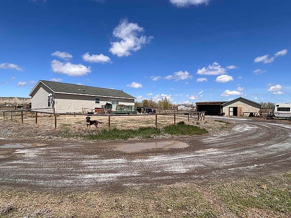 Price Improvement!!! Welcome to your rural Wyoming retreat! This charming modular home offers 1428 square feet of comfortable living space, featuring newer flooring and rustic trim throughout most of the home. Step inside to discover an inviting open concept layout, seamlessly connecting the living room, dining area, and kitchen. Cozy up by the pellet stove in the living room area, or gather around the central breakfast bar for morning coffee and conversations. Indulge in the luxury of the primary bedroom, complete with a lavish ensuite bathroom and huge walk in closet. Two additional bedrooms and another full bath complete the opposite end of the home. Outside, embrace the possibilities of out of town living with everything you need for a mini hobby farm. From the barn and lean-to to the open and closed storage areas, corrals, and a fenced backyard, finished off with a large back deck for entertaining. This property is perfect for keeping wanted critters in and unwanted critters out. Plus, enjoy stunning views in every direction and over two acres of space to stretch out on. With easy in-and-out access for trailers of all sorts, this property offers the ideal blend of comfort, convenience, and country charm. Don't miss out on the opportunity to make this your own slice of Northwest Wyoming paradise! Motivated Sellers!