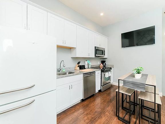 Welcome to the Modern Chic Suite, a blend of comfort and convenience, ideal for long-term stays in Pittsburgh. Located on the third floor, this apartment is equipped with essentials such as towels, linens, soaps, and more for a homely experience. The cozy layout includes two Roku TVs, a fully stocked kitchen, and a comfortable living space. High-speed internet ensures connectivity for both work and leisure. Positioned within walking distance to parks, coffee shops, and local restaurants, and less than half a mile from Heinz Field and Rivers Casino, the location is both convenient and desirable. The building offers shared paid laundry facilities in the basement. Highlights: - Pet-friendly: Small and large dogs allowed (pet rent applies). - Conveniently located near CCAC Allegheny Campus and other educational facilities, making it ideal for students and professionals. - Close to Allegheny Commons Park, perfect for leisurely strolls and outdoor activities. - Easy access to public transportation and local amenities. This apartment offers a unique opportunity to enjoy city living with the added benefit of nearby parks and educational centers. Don't miss the chance to make this your new home.