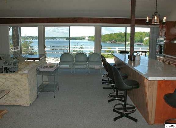 PANORAMIC VIEWS in this Lake Anna Cottage. The views will take your breath away from the moment you walk in this 2BD, 2 1/2 BA Cottage with vaulted ceilings, open floor plan, wood burning fireplace, large kitchen island, and wall to wall sliding glass doors to maximize your Water Views in the great room. Escape to the outdoors on the 800sqft rear deck or down by the 11 x 20ft Waterfront Dock!!!