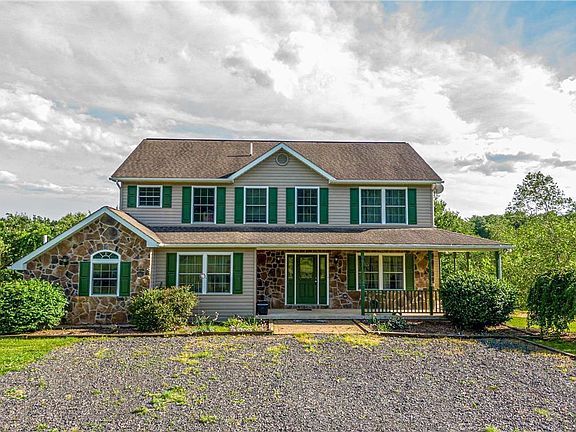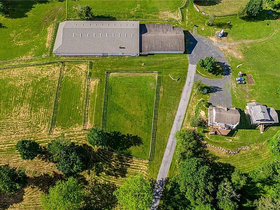 UPDATE - ZONING APPROVED 2ND HOUSE AS A RESIDENCE - CAN RENT OUT FOR EXTRA INCOME. NON-CONFORMING USE FOR COMMERCIAL HORSE FACILITY HAS BEEN CONFIRMED BY TOWNSHIP. Nicely set-up equestrian facility on 33+ acres w/ pond boasts one of the largest indoor rings in area measuring 70 x 170. Roof replaced in 2020. Rear wooden wall can be removed to add 17 more feet to length. 32 matted box stalls + 8 additional stalls & 2 pony stalls. 17x45 heated viewing room w/ office, wash stalls, grooming stalls & tack rooms. Women & men's restrooms. 2 outdoor fenced riding rings, one is 90 x 180 & the other is 150 x 300 & has a judges booth. 10 fenced pastures. Colonial home w/ 4 bedrooms & 3 bathrooms, hardwood floors in living & dining rooms have been recently refinished. Open concept kitchen with tile flooring. Paved driveway - plenty of room for trailer turn-around. Ideal property for the serious equestrian.