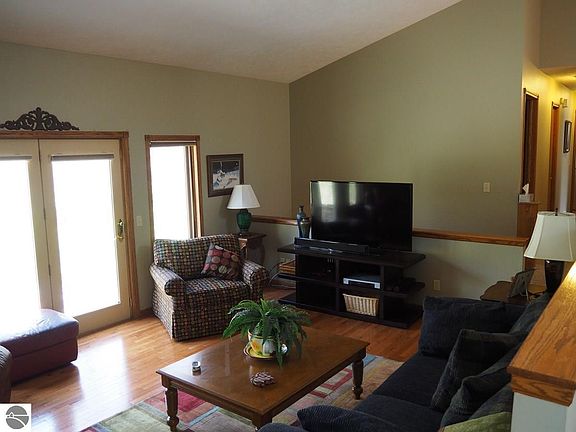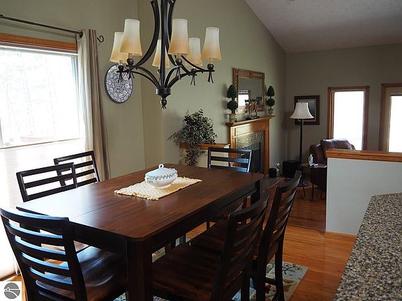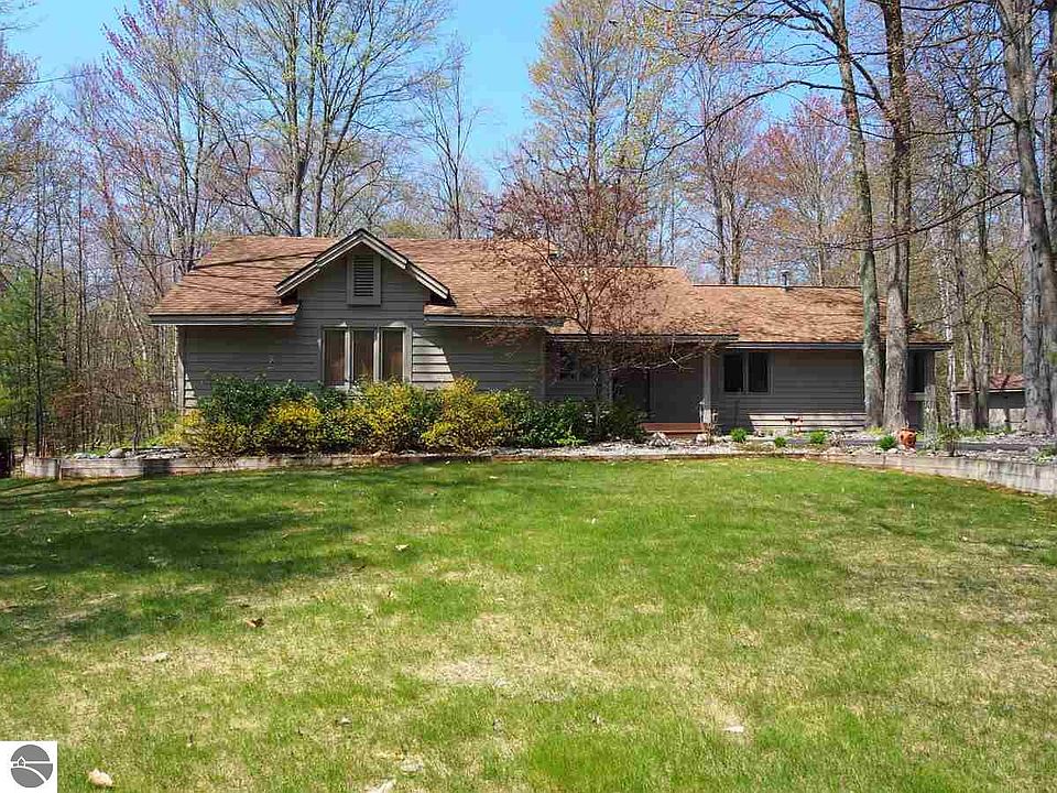 Great Traverse City west side location in Carter Woods Estate, near Long Lake. Well maintained 3+ bedroom, 2 bath ranch home with an attached, 2 car garage. Home is tucked in a landscaped, wooded acre offering plenty of privacy. Main level features exciting design, vaulted ceilings and wood floors and includes 3 bedrooms, including the master suite, and laundry room. Sunken living room feels cozy with a woodburning fireplace surrounded by attractive tile and wood. Kitchen for the cook includes plenty of solid surface counter space, corner windows above the sink and a convenient pantry. Carpeted family/den rooms and nonconforming bedroom in the finished basement. In the front yard, a treed "island" offers privacy from the road. Side deck is perfect for sunlit dining. From your backyard patio, watch birds and wildlife in the woods beyond the lawn. Near Westwood Elementary, Long and Ruth lakes, and the six-acre Carter Strong Bird Sanctuary.
