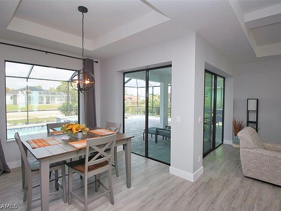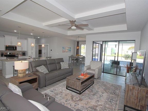 2021 NEW CONSTRUCTION SOLD TURNKEY Just move in this stunning new construction/furnished home with 3 bedrooms, 2 bathrooms, and 2,000 sqft of living space. Starting at the 14 ft ENTRY and 9'4" HIGH CEILINGS THROUGHOUT the rest of the home, with coffered ceiling in the living room along with tray ceiling in the nook and master bedroom, the home gives a very airy and open feel. KITCHEN island with modern quartz countertops, white soft close cabinets & drawers along with stainless steel appliances. The MAIN BEDROOM SUITE features two large walk-in closets, a spa-like bathroom with walk-in shower, double vanity sinks and large soaking tub. Enjoy the view of the 100ft wide Shaugnessey Canal fresh water canal while swimming in the 32 foot long heated SALT WATER POOL with SPA, color LED lighting, automation system and glass tiles. Paver decking and HUGE oversized caged pool area just to mention a few more features. The home has impact resistant double doors at the entrance, the remaining windows and doors come with shutters. Great central Cape Coral location, NO FLOOD INSURANCE REQUIRED! Whether you prefer to entertain indoors or outdoors, this home can do it all.