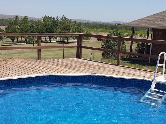 Single Family Home for sale by owner in Cache, OK 73527. Beautiful Rock Country Home with 3 Bedrooms, 2 full baths with a Jacuzzi tub on 4.5 acres. Home is located 2 miles from Cache and has splendid view of Wichita Mountains. Home is almost brand new with fresh paint, wood refinishing and carpet. Above ground pool with brand new pool liner, two year old filter and pump system. New kitchen granite counter tops, sink, backsplash, new stove, dish washer one year old, garbage disposal 3 years old. Large two car garage with plenty of parking. Livable cabana 400 sq. ft. on property. Ceiling fans throughout house and blinds on all windows.