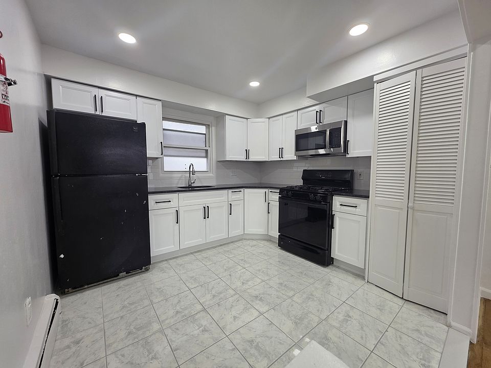 Step into this stunning and newly renovated 3-bedroom, 2-bathroom apartment, where modern elegance meets spacious comfort. Thoughtfully designed with a fresh and contemporary aesthetic, this home features brand-new cabinetry, sleek flooring, and freshly painted walls that create a bright and inviting atmosphere. Recessed lighting enhances the stylish appeal, while large windows flood the space with natural light, making every room feel warm and welcoming. Each of the three generously sized bedrooms provides ample space for relaxation and personalization, whether you're setting up a cozy retreat, a productive home office, or a stylish guestroom. The two beautifully updated bathrooms offer both functionality and sophistication, with modern fixtures that complement the home's refreshed look. The expansive living spaces allow for easy entertaining, while the kitchen boasts plenty of storage and counterspace, perfect for home-cooked meals and lively gatherings. Located in a prime area, this property offers unparalleled convenience. It is within close proximity to transportation options to New York City, the Journal Square PATH Station, major universities, laundromats, parks, and more ensuring you have everything you need just moments away. For added convenience, one parking spot is available for an additional cost. Don't miss out on this incredible opportunity to experience comfort, style, and spacious living all in one! Fee applies. Owner pays Cold Water. Tenant pays Gas and Electricity.