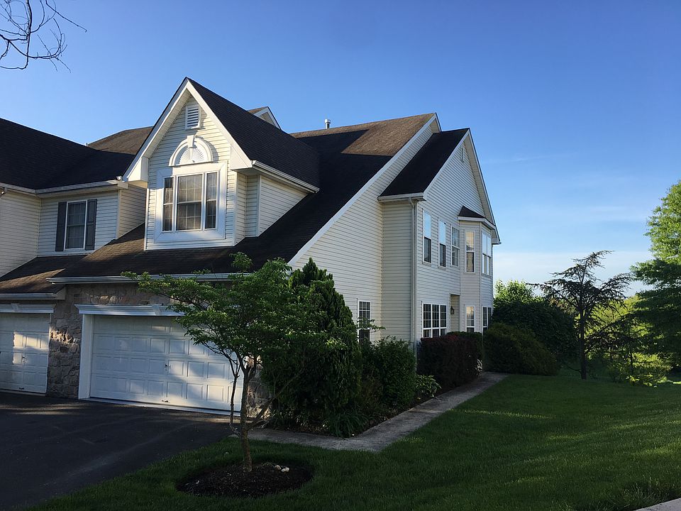 Location! Location!! Location!!! This largest end unit is located on a cul-de-sac and backs to open space in much sought after community, Warrington Hunt. This home boasts an open floor plan with large great room, dining room and kitchen. First floor library can be used as living room or 4th room. Granite foyer and hardwood floors welcome you to fine living. Completely renovated kitchen offers quartz countertop, oversized cabinets, glass backsplash tile, under mount stainless sink and stainless appliances. Great room with wood burning fireplace leads to a sliding door to deck which provides scenic views. Expanded patio below the deck offers additional place for outside entertainment. Spacious master suite boasts cathedral ceiling, his & hers walk in closets and well appointed master bath with Jacuzzi tub, separate shower and double sinks. Two additional large bedrooms, hallway bathroom and laundry room complete the second floor. A full finished walkout basement provides additional living space. Yes, this home comes with rare two car garage