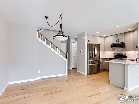 Welcome home! This stunning south-facing townhome nestled in the heart of southwest Longmont. This spacious 2-bedroom, 2.5-bath home with a versatile loft and finished basement offers 1,725 sq ft of thoughtfully designed living space, now fully refreshed and move-in ready. Step inside to discover fresh paint throughout, refinished hardwood floors, and newer carpet that give the home a modern, airy feel. The open-concept main level features soaring vaulted ceilings, a cozy gas fireplace, and a dining area that flows seamlessly into the fully renovated kitchen, complete with new countertops, stylish backsplash, new appliances, and contemporary light fixtures. Upstairs, the spacious loft is perfect for a home office or flex space. The top-floor primary suite is your private retreat, featuring a walk-in closet and a luxurious en suite bath with double vanities, soaking tub, and separate shower. A second bedroom and full bath complete the upper levels. The finished basement offers new luxury vinyl plank flooring and laundry hookups-ideal for a media room, gym, or guest space. Other upgrades include new blinds throughout, a brand-new furnace and AC, and an attached 2-car garage. Located close to parks, top-rated schools, and just minutes from Boulder and downtown Longmont, this beautifully updated home is the perfect blend of comfort, style, and convenience. Don't miss your chance to own this turnkey gem! Next Light internet available for $39.95/month!