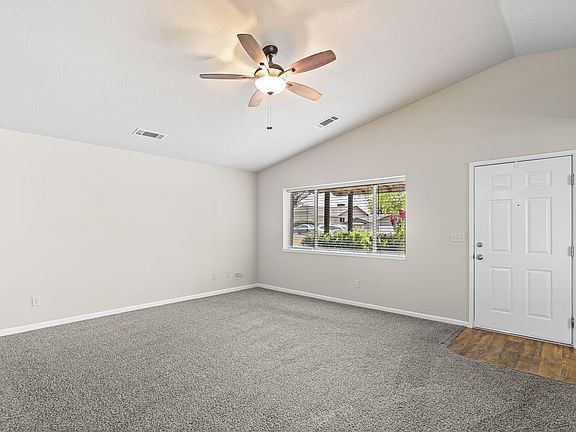 Ideal starter home, down-size home or rental investment property in a great neighborhood. New roof (2014) and HVAC (2015). Fresh interior paint, modern kitchen. New Mohawk laminate flooring in kitchen/dining and baths. Vaulted ceilings in the living room/dining area, newer ceiling fans in living/bedrooms. Spacious primary bedroom with walk-in closet and en-suite bath. Low-maintenance front yard on timed drip system. Large covered porch, fully finished 2-car garage. Fenced yard with room for trailer/boat. Expansive private backyard with fruit trees. Convenient location, minutes to WinCo, Target, Cinemark, In-N-Out & churches. Boulder Creek K-8 school within walking distance.