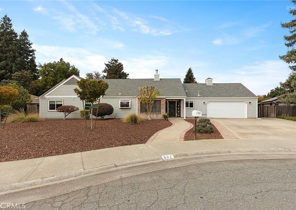 This beautifully updated and gently lived in home is located in the ever-so popular Big Chico Creek Estates subdivision on a cul-de-sac. When you enter the home, you are welcomed by the natural lighting that this home offers, and the well-designed floor plan. The formal living room offers a wood burning fireplace and is partially opened with a mid-century stated wall between the living room and the family room. (really a nice touch of adding a special design). The updated kitchen has one of the most beautiful granite counters that I have seen with a "river" design "flowing" through the granite, and the cherry cabinets are gorgeous. The extra touches in the kitchen include updated lighting, pull-outs, pot and pan drawers, convection oven, and a hot water dispenser at the sink. The dining area is located off the kitchen. Both bathrooms in this lovely home have been updated, with the hall bathroom featuring a soaking tub, beautiful tile surround in the tub/shower, tile floors, new lighting and sink. The primary bathroom offers new tile surround in the shower. Seller has made many improvements to the home such as: installing beautiful porcelain flooring in the entry, laundry, kitchen and dining area, and replaced gutters and installed gutter guards (not at back patio), put in a tankless hot water heater, insulated the garage door, put in drought resistant front yard landscaping, and brand-new carpeting in the bedrooms. The engineered hardwood flooring is also a wonderful addition. So much to offer but wait there is more!! The backyard is large enough for you to install a pool if desired, there are fruit trees, garden bed areas and a lovely, covered patio area. If you need a small space to park a boat, the double gates to the side of the house would be a perfect spot for that. Such a wonderful home with all of these fine features and location, location, location!!