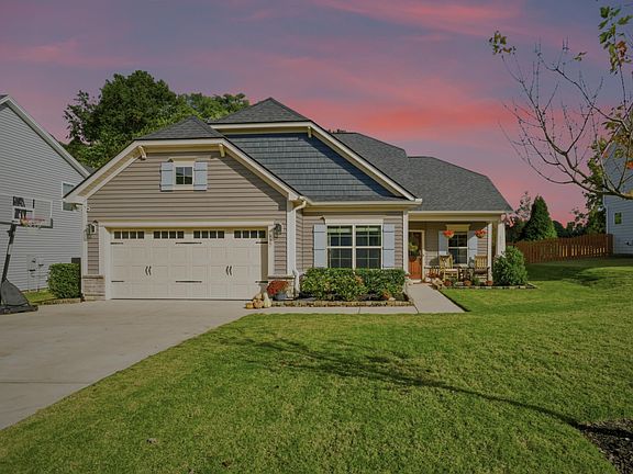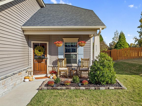 TRICK OR TREAT! Can you spot the cat in the photos?! If you're hunting for a single-story home with cottage-core charm this Halloween, look no further than 827 Tupelo Glen Court in the vibrant town of Fuquay-Varina! This 4-bedroom beauty has all the right ingredients: cozy wood floors, rich cabinetry that pairs with any décor style, and Origami White walls that make every space glow. You'll love the private office for quiet work calls, expansive ceilings with surround-sound speakers for entertaining, and main-level living featuring a gorgeous primary suite and 2 spare bedrooms. Enjoy your natural gas fireplace, stove, and heating for those cool fall nights, then step outside to a covered back patio extended with extra concrete—perfect for fire pits, s'mores, or spooky gatherings. Out front, vibrant blue hydrangeas welcome you each summer, while the backyard is framed by white limelight trees. The driveway's been expanded for comfortable parking or a basketball hoop. Upstairs you'll find another bedroom, a full bathroom, floored attic and large closet, ideal for seasonal décor or costume stashes. Sunlight pours through the large windows, and the private, flat backyard is just waiting for your next pumpkin-carving party. The Avalon Springs neighborhood offers tree-lined streets, walking and biking paths, a saltwater pool, clubhouse, playground, and cozy swings throughout—everything you need for a friendly, community feel. Best of all? You're just minutes from Downtown Fuquay and Varina, a quick hop to Holly Springs or Apex, and close to some of the best schools around. Every day feels a little more fun in southern Wake County!