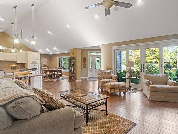 Completely gutted and remodeled by Ron Flora builder in 2013. 2,010 sf, 2 bedrooms each being a suite with a private baths, 2.5 baths total, 2 car garage and more. Open concept with tall cathedral ceilings, custom Amish cabinets with a large island. Custom built-ins everywhere. An all concrete room that has multiple uses. Hardwood floors, Anderson windows, custom tile walk-in showers. 30x8 screened porch with tile floor. 3/4+ acre lot with a pond on the property. High efficient gas furnace, gutter guards, built in speakers and more.