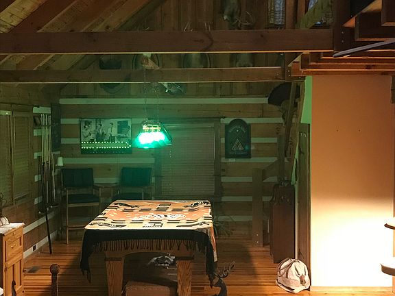 Beautiful Log home on 6.2 acres. Enjoy the outdoors around the lake or swinging under the covered porch. This home includes a nice large 2 garage with additional storage. new metal roof in 2019. 1 bedroom on the main level and seller uses loft as second bedroom. Room in loft to create additional bedrooms if a buyer was inclined.