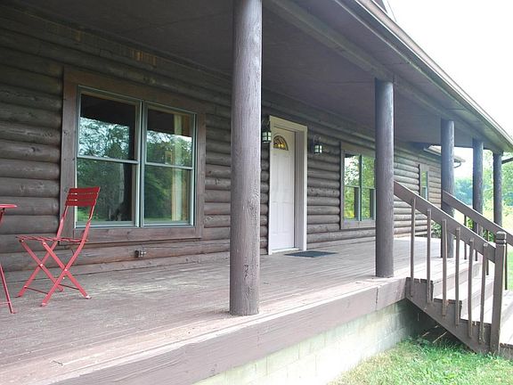 Authentic over 2700 sq ft full cut log home w/exposed wood logs and beams throughout home. Full walk up basement, side load 2 car garage, huge front and rear covered porches, all on 5 beautiful country acres. Traditional floor plan w/large living room, office/den, huge family room, formal dining area, large country kitchen loaded with cabinets & stainless steel appliances. Huge bedrooms, all vaulted with exposed beam ceilings and skylights. Bonus room finished over garage. 6 panel wood doors, water filtration system and more. Truly one of a kind home. This is a cool home with tons of potential. Great lot with huge area to fence for pasture or just let grow. Very private. Property goes all the way back to the corn field! Homeowner has done a ton of improvements! Agents see attached list.