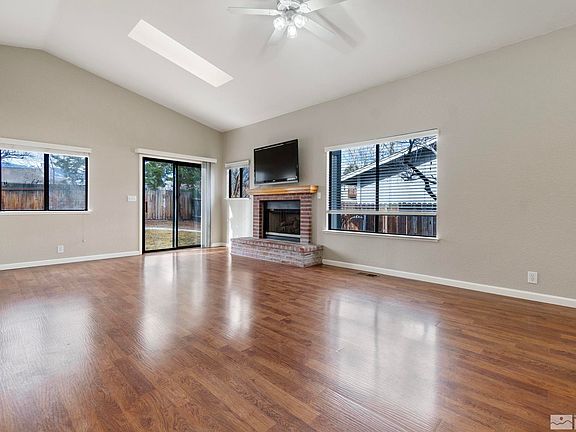 OPEN HOUSE - SUN JAN 28th - 11A to 3P. Come see this charming 3 bedroom, 2 bath home located in South Reno. As you walk inside, the first thing you'll notice is the warm tones of the wood laminate floors along with the natural light pouring through the windows & skylights throughout the home. A large-screen TV hangs above the mantel of the brick fireplace that adorns the living room creating a great atmosphere for reading a book, hanging out with friends or just taking a moment to enjoy your morning coffee., Recent updates include new light fixtures, new carpet & pad. The spacious, grassy backyard is ideal for entertaining, gardening, or grilling your next feast. The mature trees offer great shade in the summer, making this a perfect, tranquil, one-of-a-kind oasis. Close to shopping and restaurants, this home has everything you need and won't be available for long, so schedule a showing right away!