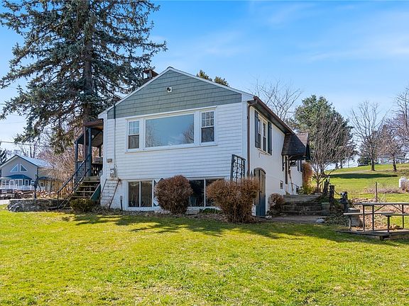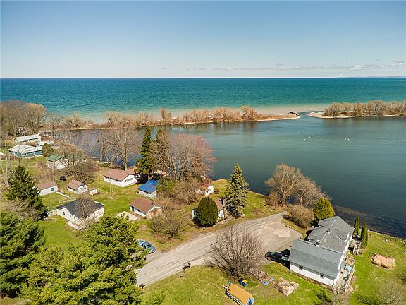 W A T E R F R O N T !! Level BAYFRONT!! Stunning FULLY FURNISHED 2 bedroom YEAR ROUND RANCH on EAST BAY with a WIDE OPEN FLOOR PLAN! ~130 feet of water frontage! Gorgeous Living area with 3 Walls of Windows overlooking the BAY! Wonderful kitchen with an abundance of cabinets and Large eating area! GAS Fireplace with surround! Covered porch and separate patio. A second "SUMMER HOUSE" with power and double doors to a deck overlooking the water. A TWO car garage with separate work shop in the back! Walk out basement! Bring your boat, jet skis, kayak’s and fishing gear!! The bay opens to LAKE ONTARIO ! Conveniently located near Chimney Bluffs State Park, Sodus Point & Bay & Fair Haven & it's State Park, not to mention all the local restaurant's and vineyards! Spectrum cable and internet available. The town clerk for the Town of Huron states that public water is scheduled to be installed in 2026. Delayed negotiations until Tuesday April 29th a 1pm. A must see!