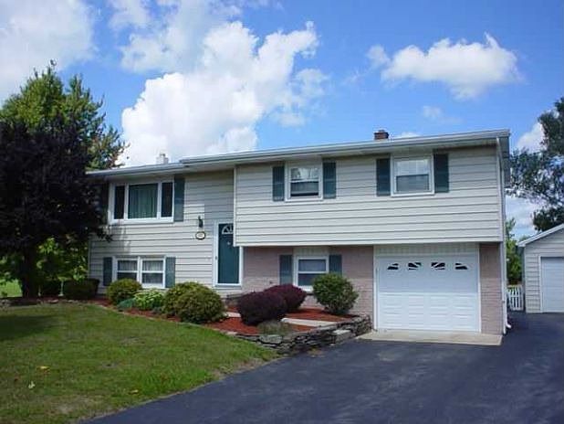 REDUCED! Wonderful 1600+ sq ft 3 bedroom 2 bath raised ranch on 1.4 acres of peaceful country setting with gentleman's dream, 32 X 26, 4 bay separate garage/shop w/loft! Fabulous "Maedl" wood cabinetry kitchen & formal dining room flowing to spacious formal living room! Extra large Master Bedroom! Lower level living space includes bedroom, remodeled full bath w/ rounded shower and laundry area plus great family rm w/patio doors to covered veranda complete w/vinyl fencing & lovely landscaping! Updated mechanics to include: boiler & HWT '09, garage door, windows and so much more! Don't miss it!