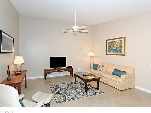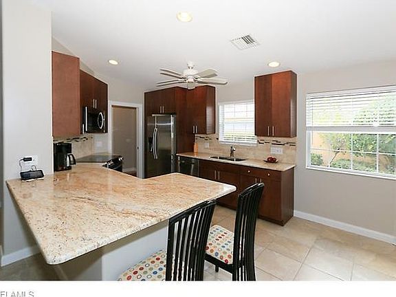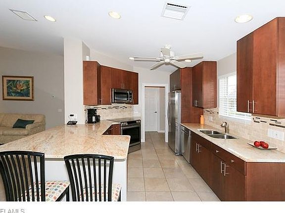 Yasmina Way is a unique location in Verona Walk, tucked away across the street from a beautifully landscaped park. The home is a gorgeous upgraded Capri III villa built with solid poured concrete. The oversized homesite is pie shaped. Complete kitchen renovation features contemporary and high end, soft close dove tail cabinets and high grade granite. The cabinet layout was improved to open the kitchen to the great room area. Stainless steel appliances by top rated Samsung and a matching stainless under mount sink. Top quality, tempered glass French doors open to the private pool area giving this home a special feel. All floors are tiled. Master bathroom has frameless shower door. Many closet doors have been updated with bright white paneled doors. Verona Walk is a haven for social and fitness activities, with a 20, 000 square foot activity center at the heart of the community. No additional membership fees for the use of the facility, including café, bank, post office, gas station, salon and travel agency. Enjoy the resort style pool, lap pool, fitness center, dance floor and card rooms with an array of activities!