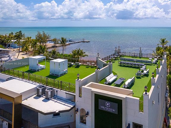 The Chateau on the Ocean is a private oceanfront estate in Islamorada, where world-class design meets unmatched amenities. Completely renovated in 2022, this gated estate spans 10,182 sqft & offers 7 bedrooms & 9.5 baths. Set along a pristine private coastline, it features a 100-ft private dock & an expansive rooftop terrace with breathtaking Atlantic views. Interiors showcase soaring ceilings, walls of glass, & couture finishes. Amenities include a resort-style mosaic pool, oceanfront jacuzzi, state-of-the-art gym, indoor basketball & pickleball courts, & a Baccarat-inspired ballroom. A custom “Glamour Suite” with salon-grade styling stations, wellness spa, outdoor theater, & multiple terraces elevate every moment. Approved plans for four additional guest suites, including two oceanfront.