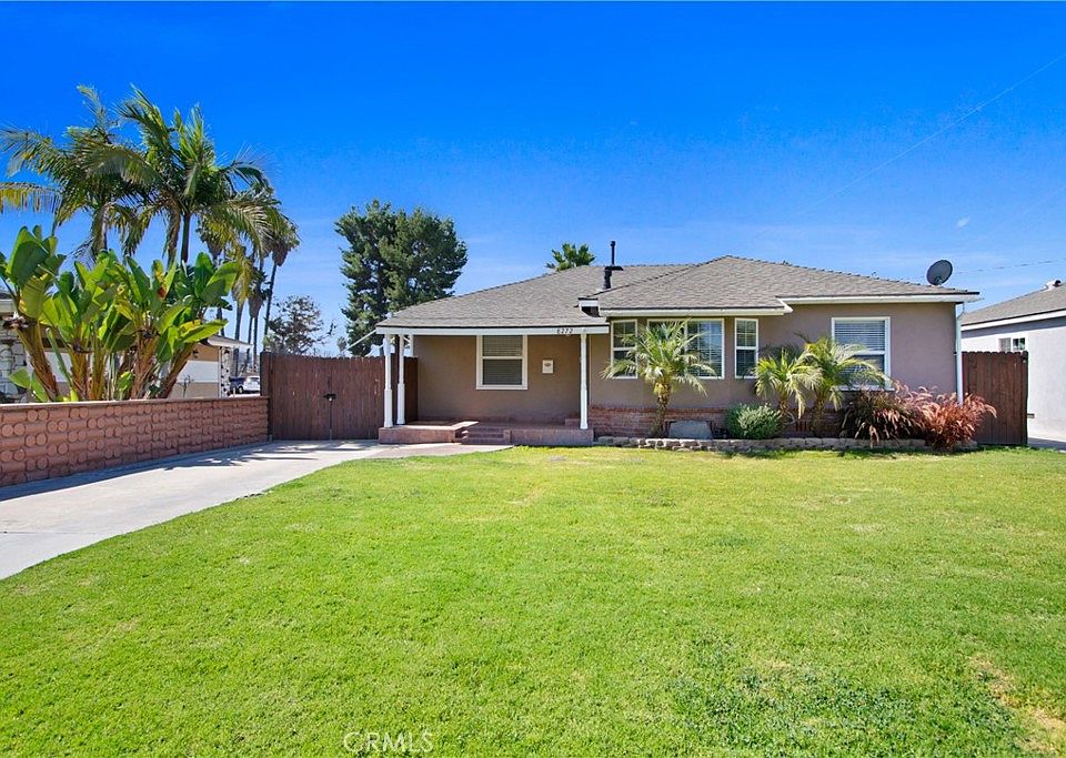 Hurry to see this turnkey, remodeled 3 bed, 1.5 bath home on a large 8,000 sqft lot with ADU potential in beautiful Buena Park, CA! The welcoming front porch overlooks the well manicured front lawn. Step through the front door onto the tile entryway with coat closet. Laminate floors flow throughout the home. The spacious living room is highlighted by the gas fireplace with tile mantel top, surround, and hearth. The living room also features crown moldings, a ceiling fan/light, in-ceiling speakers, and windows looking out to the front grounds. Continue into the kitchen adjacent dining room which features chair rail moldings, a walk-in pantry, breakfast counter/bar, access to one of the bedrooms, and large windows that bring in abundant natural light. The kitchen is tastefully remodeled with gleaming granite countertops and newer cabinets, Frigidaire stainless steel gas range and dishwasher, Nutone stainless steel range hood, and ceramic tile floors. Located off of the kitchen is the half bathroom with granite countertop and laundry room with hookups to accommodate a full-sized stackable washer and gas dryer. A door leads from the laundry room to the huge back yard. The hallway to the bedroom wing leads to the remodeled full bathroom and two more bedrooms and has built-in upper and lower cabinets with a granite folding counter. The full bathroom features dual sink vanity with granite countertops, a tiled shower over tub, and travertine tile floor. The two bedrooms off the hallway and the third bedroom off the dining room all feature crown moldings, mirrored closet doors, laminate floors, and have two windows to either the front and side yards or back and side yards respectively. The home is outfitted with central air conditioning and heating, a whole house fan, and a tankless water heater. A long gated driveway leads to a two car detached garage with newer garage door opener. The back yard is huge and has tons of space for outdoor sports/activities, entertaining guests, gardening, you name it. The large unfinished rear section of the back yard is an open canvas for your landscaping desires and may have potential for a large pool and spa or even possibly an ADU. So many possibilities! Opportunities abound! Don't wait on this one!