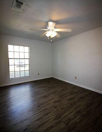 Perfect for students with horses! 4 Bedroom, 3 bath brick house on 5 acres. Large open kitchen/living/dining area with fireplace. Garage conversion into separate master bedroom and bathroom with private entry, huge walk-in closet and individidual ac/heat unit. Ceiling fans in all bedrooms and open living/dining. Huge separate laundry room with folding and hanging area. Hall bath has large vanity with two sinks and deep tub. Flooring is new weathered wood look vinyl plank. No carpet. Pets allowed with limitations. New barn with 3 stalls, corral and tack/feed room. Pest control paid for!