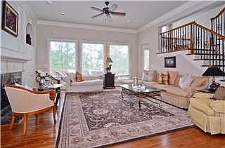 Spectacular view of the lake!! Ultimate private lot (no one can build in the back), 5 or 6 bedrooms, 5.5 baths, 2-story foyer w/double iron door, office, banquet size dining room w/leaded transom, great room is open & airy w/3 arch windows overlooking large level yard (natural & private), gourmet kitchen w/granite, huge island & work desk, large keeping room w/FP, Huge master w/sitting area & FP. Upstairs has 4 spacious bedrooms & 3 full baths.Daylight finished basement has large game room, 2nd den w/FP, bedroom/playroom & full bath (ideal for in-laws). Landscape lighting front & rear, 3 hvac systems (main & 2nd level are new), main level & bsmt garages. Backyard is approved for pool & is perfect for kids playground. Home sits on 2 private lots with ultimate privacy in the back. Home sold "AS IS."