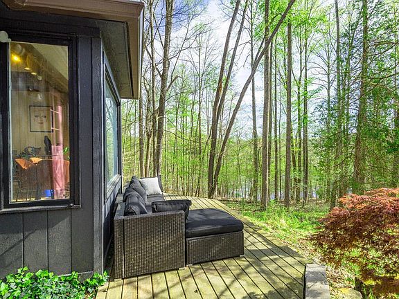 Come and get your love! This home spoils you with its water views and four acres of wooded bliss. Currently owner occupied and adored, it features new hardwood floors, a newer furnace and air conditioner, some new fixtures, and beautiful tall, beamed ceilings. The property also has a few "waterfalls," designed for dramatic cascades during rainfall. No pond rights. This home is conveniently located between Bloomington and Brown County and is a 10-minute drive to local shopping and restaurants. Yes, there's also high-speed fiber internet. For many years this home operated as a successful vacation cabin business (air bnb). This sale will not be contingent upon that ability, but the county has indicated that the home likely would qualify again after re-application. Once you move in, though, you may not want to leave! Enjoy all the seasons like never before, with colorful leaves, summer frogs, snow-topped trees and wildlife worthy of picture books.