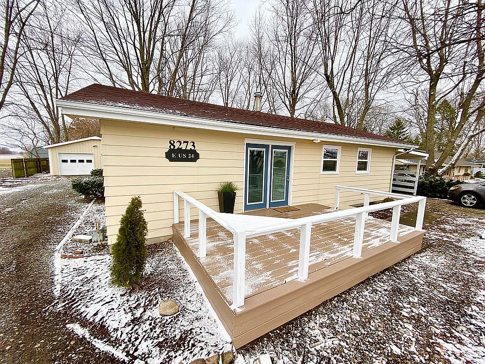 Welcome to this beautifully updated home with tons of curb appeal on a country setting and just MINUTES from town! Get the best of both worlds - a quite, private lot with scenery of fields and a wooded backyard, while enjoying the shopping and restaurants that downtown Monticello has to offer. Enjoy a cup of coffee on either the front or back porch - you take your pick. Almost everything in this home is brand new. Inside you will find an open-concept kitchen and living area with a butcher block breakfast bar and tons of natural light. Kitchen has all new stainless steel appliances, sink and garbage disposal, and countertop. Stay warm by firing up the wood-burning stove in the living room with a beautiful exposed brick accent wall - you may not even have to use your furnace! Off the living room you will find the oversized master suite, which includes the laundry room! The master bathroom has been completely updated with all new water and light fixtures, toilet, custom tiled shower, double vanity, and tiled floor. On the other side of the house is the guest bedroom with built in shelving. Guests will have easy access to the second full bathroom, which has also been completely renovated with all new fixtures, toilet, tiled flooring, vanity, and tiled shower/tub. Other updates to the home include new waterproof luxury vinyl plank flooring throughout the home, new light fixtures, new pex plumbing in majority of home, new well pressure tank, and vaporbarrier added in the crawlspace. Large detached FBI-truss garage with drain and power. Garage and house have been freshly painted, and the home has all new windows and gutters. Home has new AC unit as well, ductwork has been professionally cleaned and sanitized, furnace is only a few years old. Old barn with workshop behind garage in the backyard with electricity. Barn is sold as-is, but could be great for additional storage and a workshop with some TLC. This house is ready to be your home!